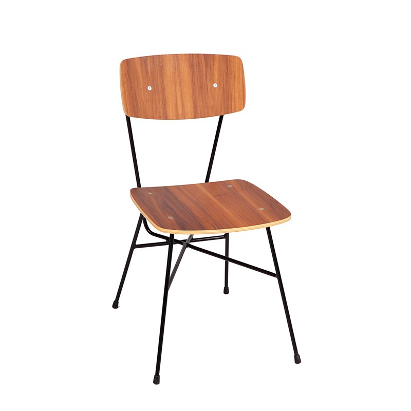 POWDER COATED STEEL FRAME / BEECH OR WALNUT VENEERED PLYWOOD SEAT AND BACK
