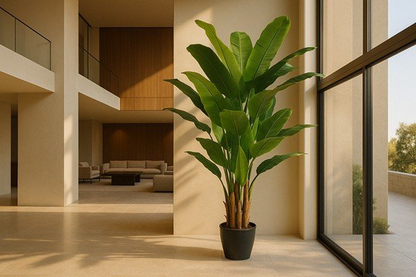 Η τεχνητή μπανανιά με τα πυκνά και πλούσια πράσινα φύλλα της, θα δώσει μια αίσθηση τροπικού κλίματος στον χώρο που θα επιλέξετε να την τοποθετήσετε.