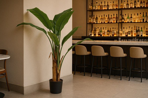 Η τεχνητή μπανανιά με τα πυκνά και πλούσια πράσινα φύλλα της, θα δώσει μια αίσθηση τροπικού κλίματος στον χώρο που θα επιλέξετε να την τοποθετήσετε.