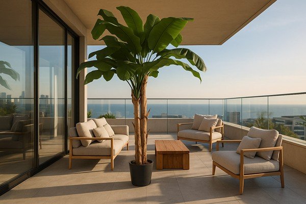 Η τεχνητή μπανανιά με τα πυκνά και πλούσια πράσινα φύλλα της, θα δώσει μια αίσθηση τροπικού κλίματος στον χώρο που θα επιλέξετε να την τοποθετήσετε.