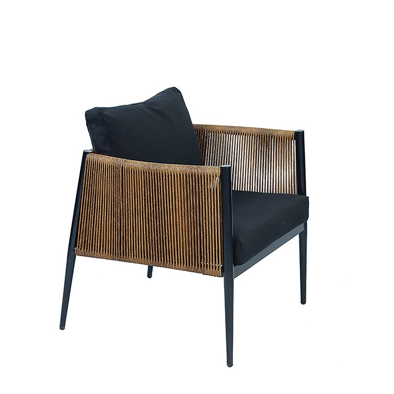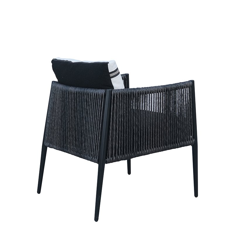 POWDER COATED ALUMINUM FRAME / WOVEN SYNTHETIC CORD SHELL / SEAT AND BACK CUSHIONS INCLUDED