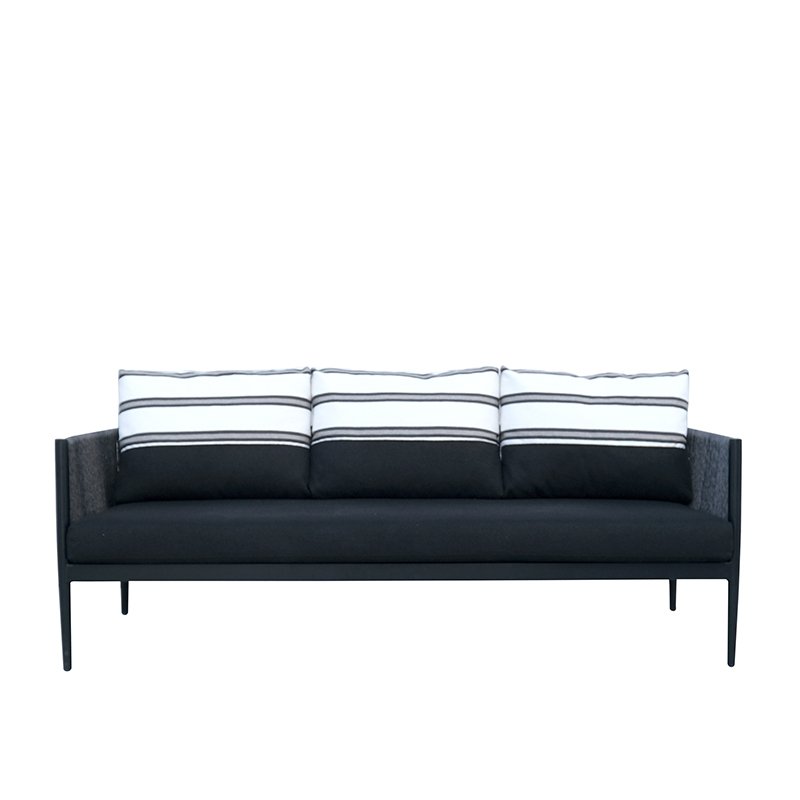 POWDER COATED ALUMINUM FRAME / WOVEN SYNTHETIC CORD SHELL / SEAT AND BACK (3PCS) CUSHIONS INCLUDED