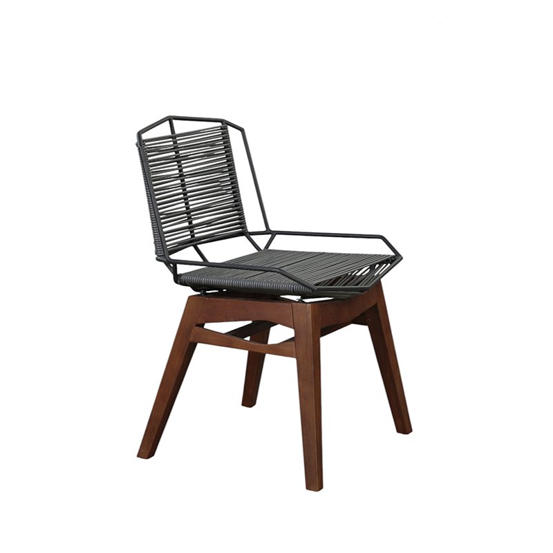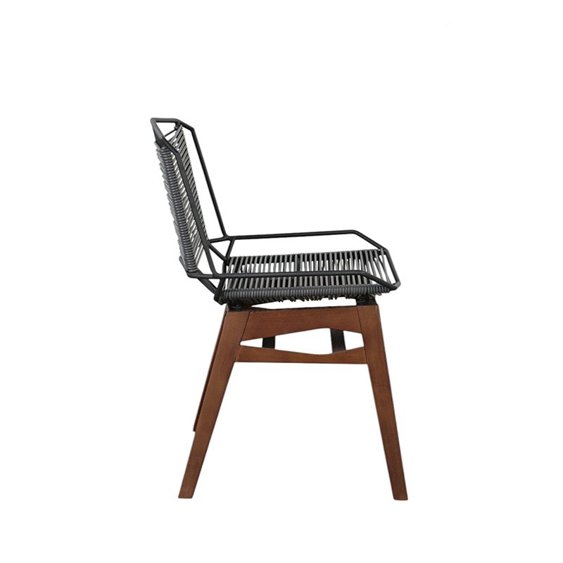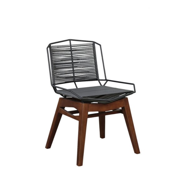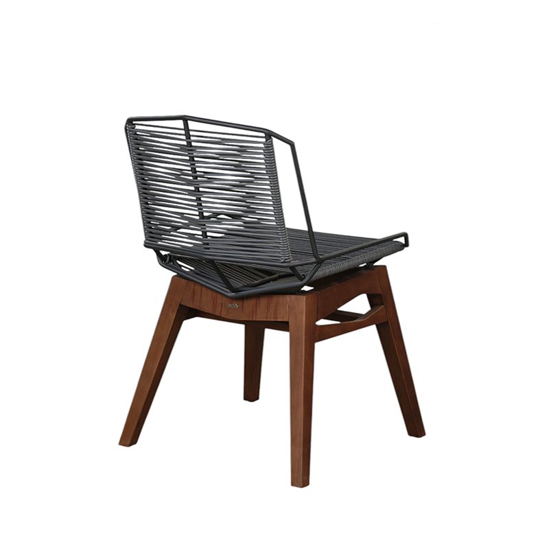 POWDER COATED ALUMINUM SHELL / TROPICAL WOOD LEGS / WOVEN PLASTIC CORD SHELL
