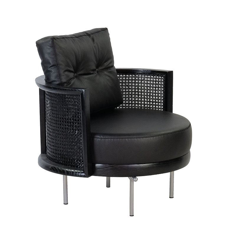POWDER COATED STEEL LEGS / BEECH WOOD SHELL / UPHOLSTERED SEAT / CANE BACK / BACK CUSHION INCLUDED