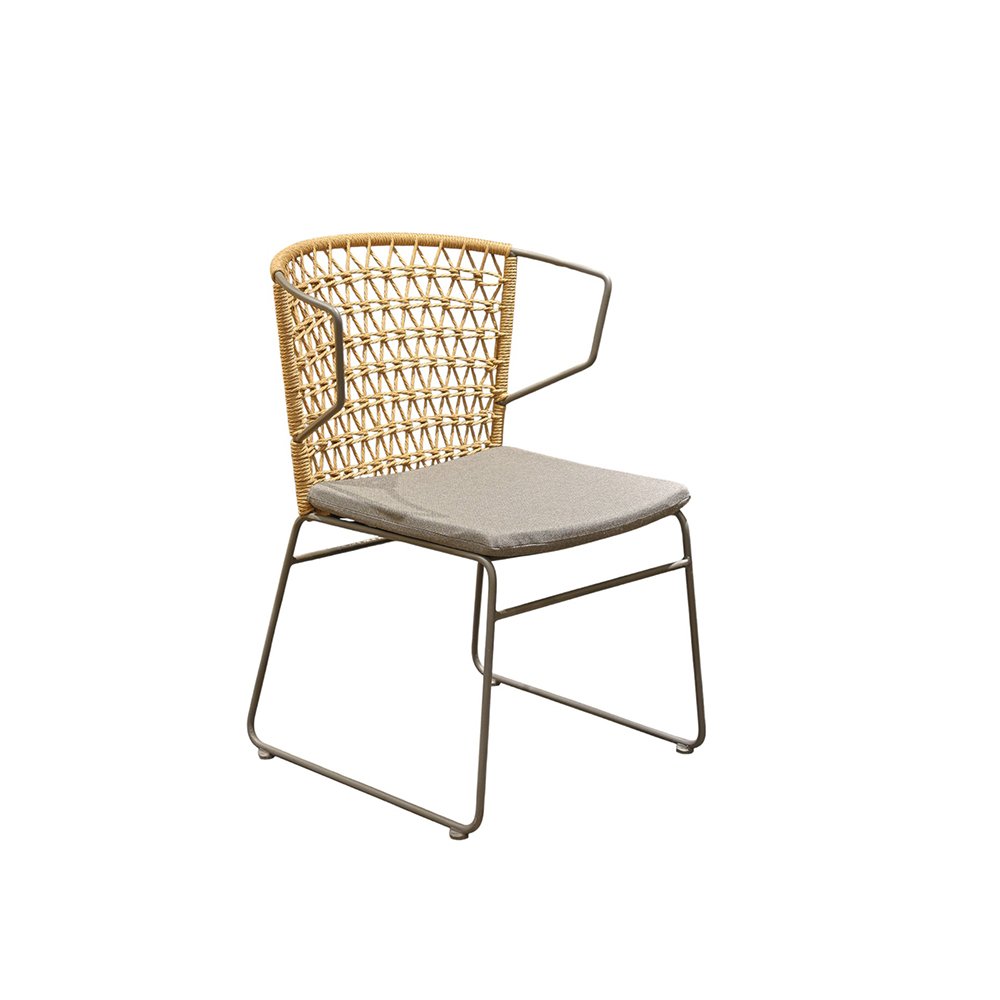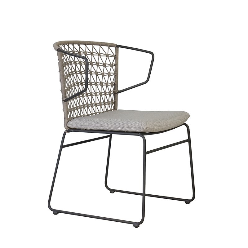 POWDER COATED STEEL FRAME / WOVEN SYNTHETIC OR FABRIC CORD BACK / SEAT CUSHION INCLUDED