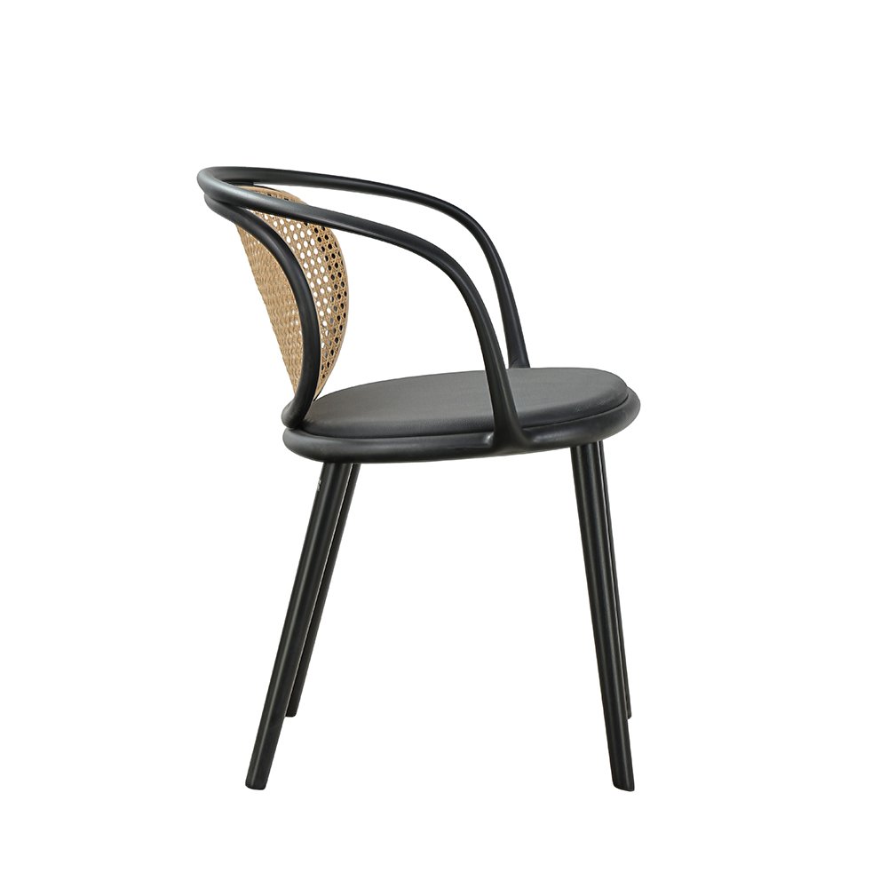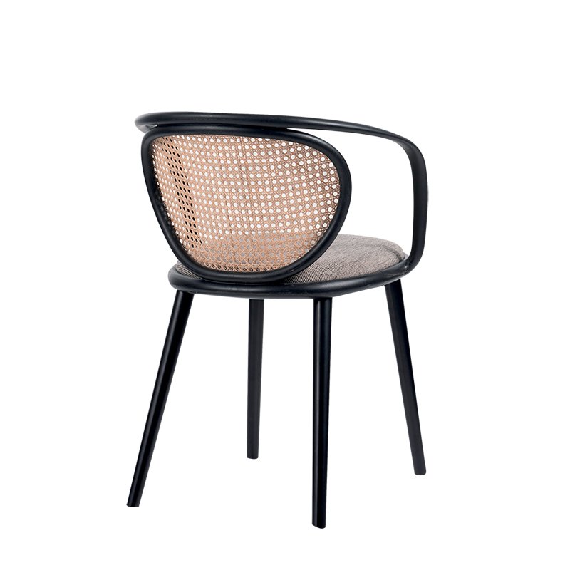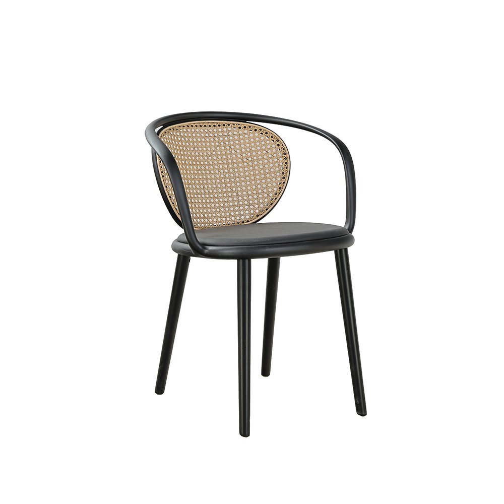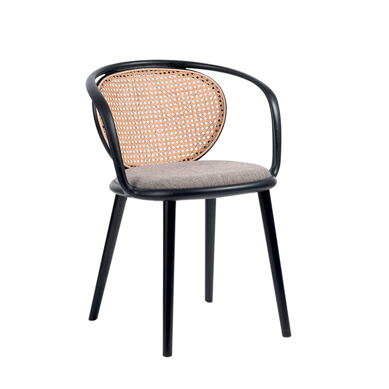 BEECH WOOD FRAME / PLASTIC ARMRESTS / UPHOLSTERED SEAT / RATTAN BACK