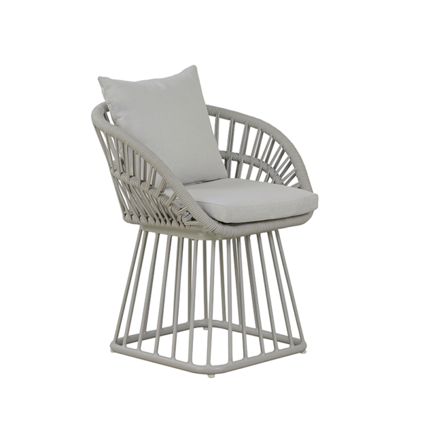 POWDER COATED ALUMINUM FRAME / WOVEN FABRIC CORD SHELL / SEAT AND BACK CUSHIONS INCLUDED