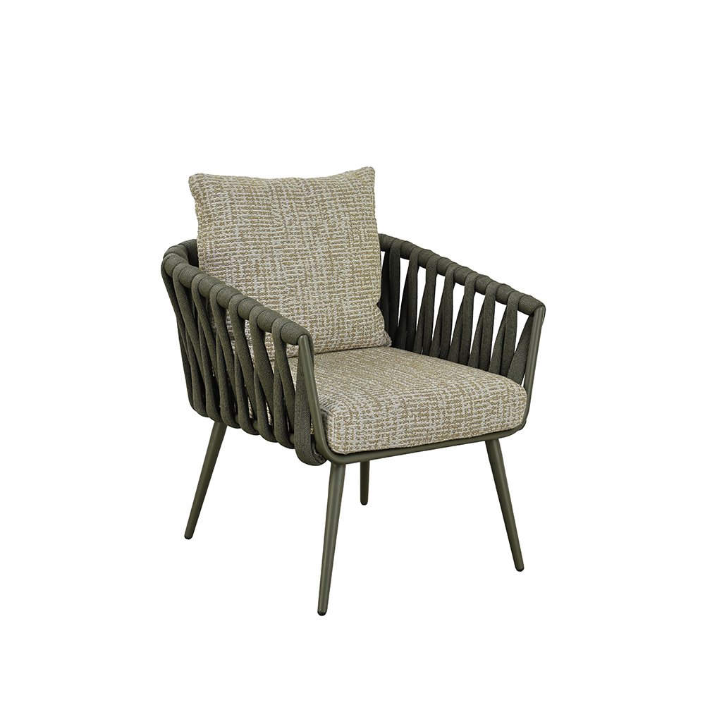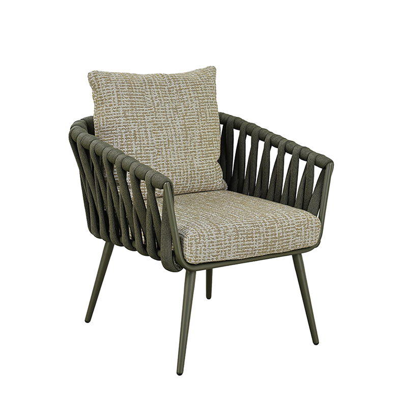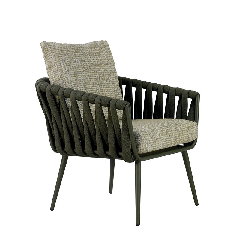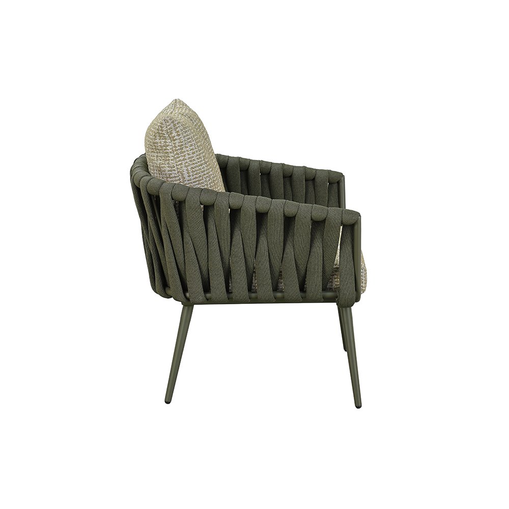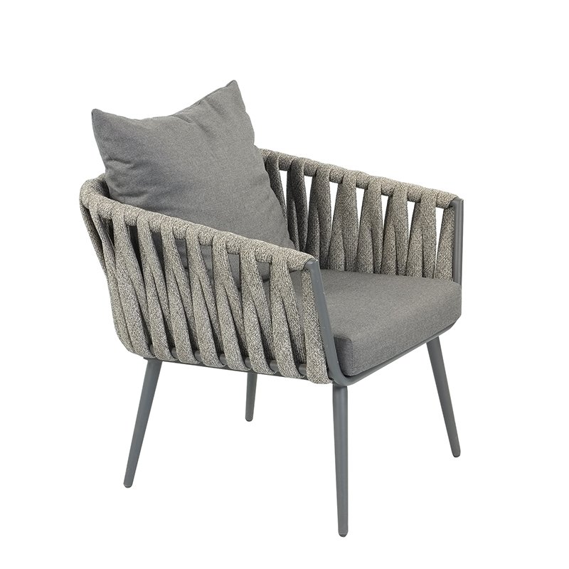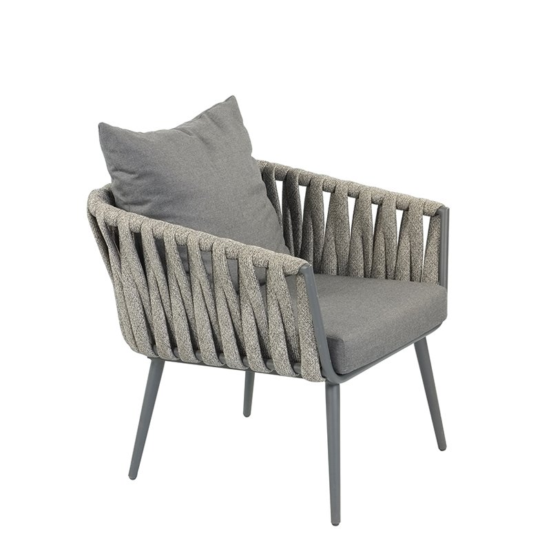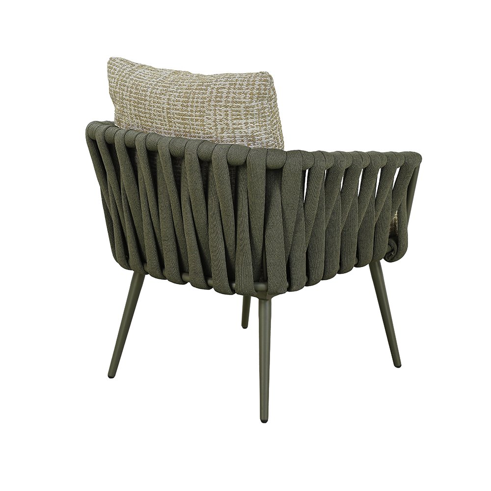 POWDER COATED ALUMINUM FRAME / WOVEN FABRIC OR PVC BELT SHELL / SEAT AND BACK CUSHIONS INCLUDED