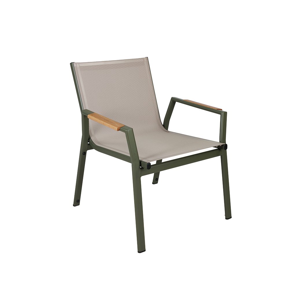 POWDER COATED ALUMINUM FRAME / WOODEN ARMRESTS / SEAT AND BACK IN TEXTYLENE / SEAT AND BACK IN TEXTYLENE