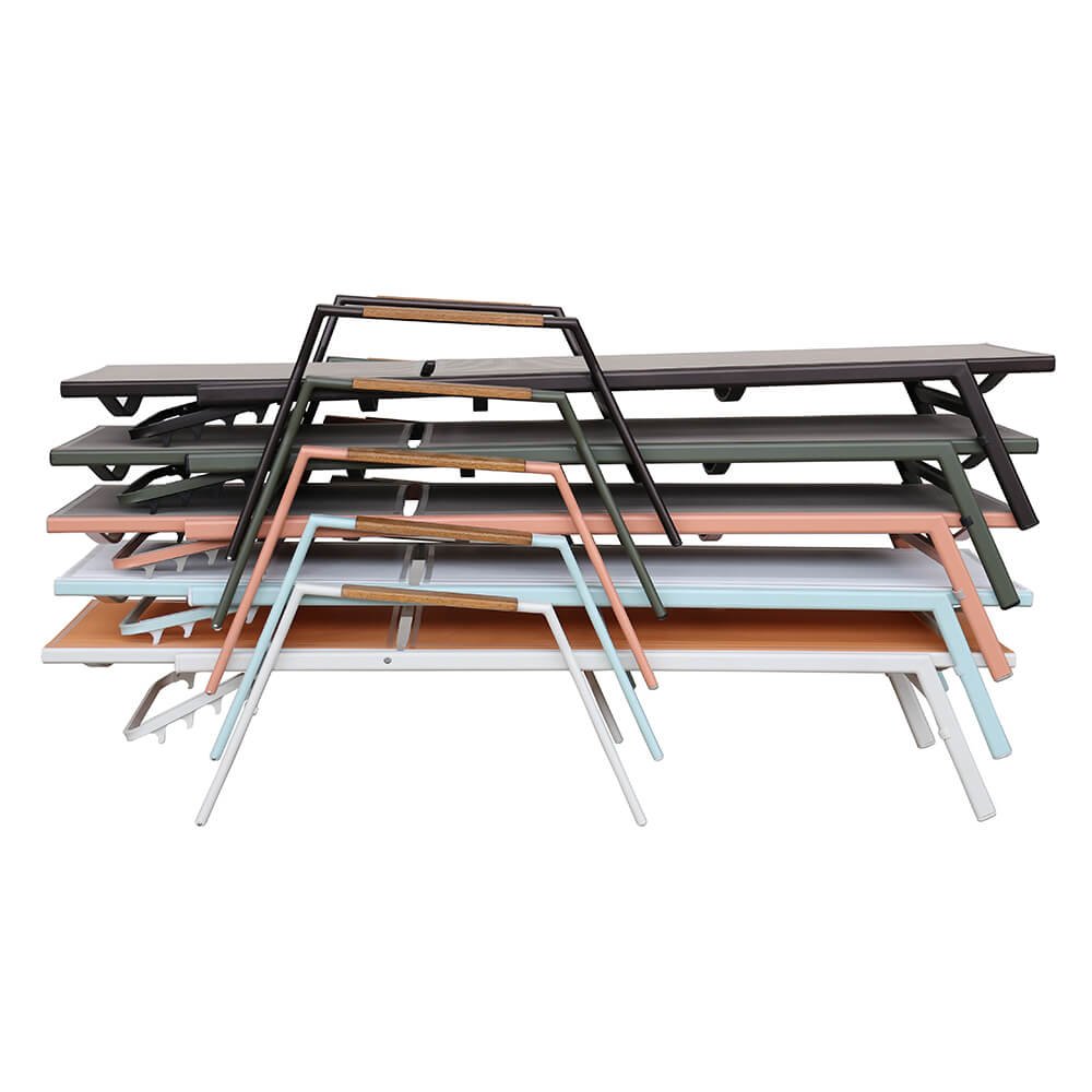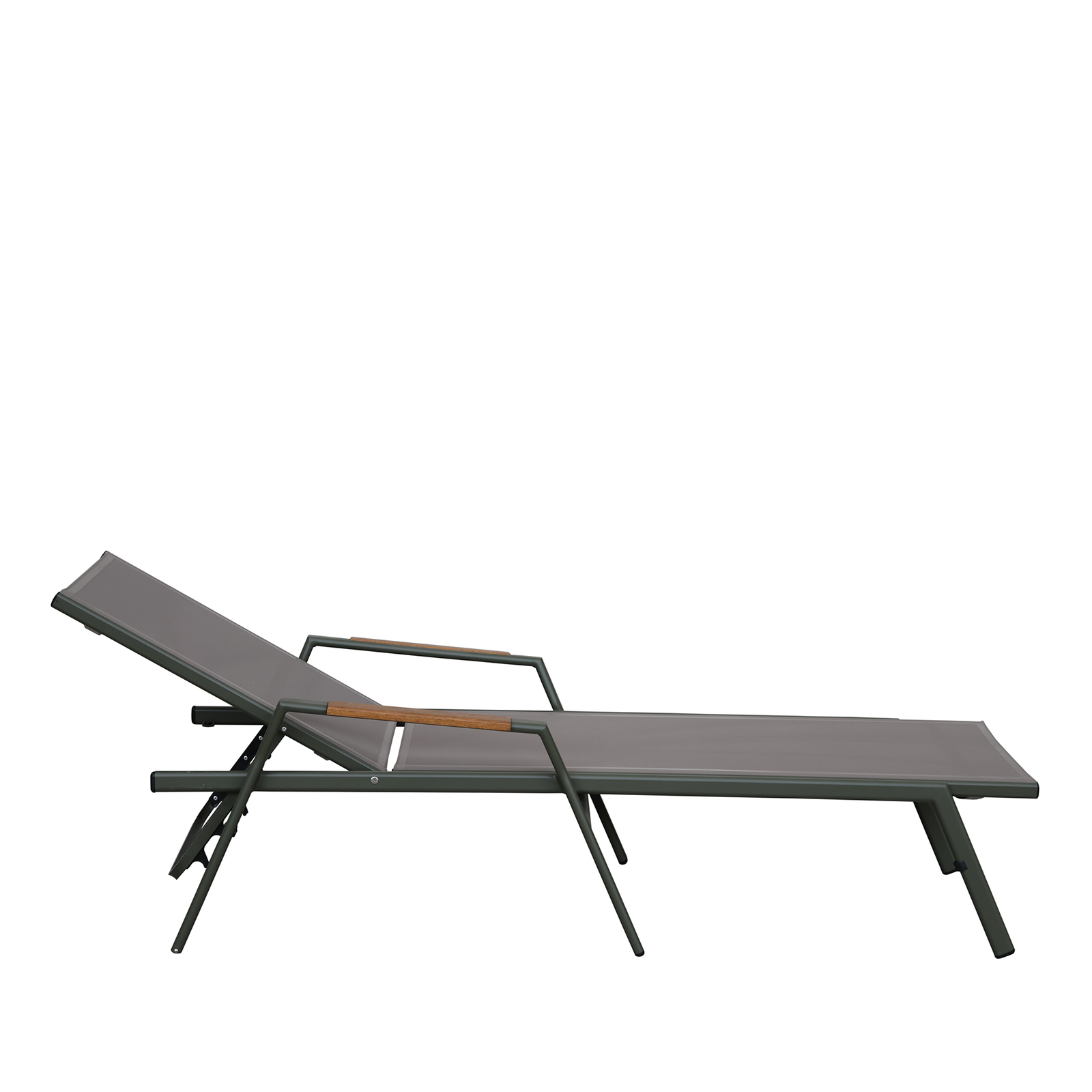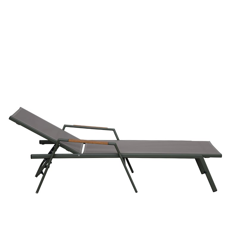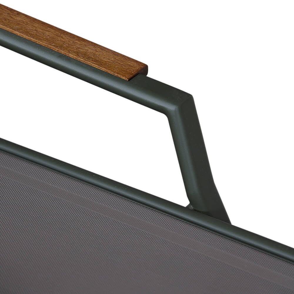 POWDER COATED ALUMINUM FRAME / WOODEN ARMRESTS / SEAT AND BACK IN TEXTYLENE / INTERNAL WHEELS