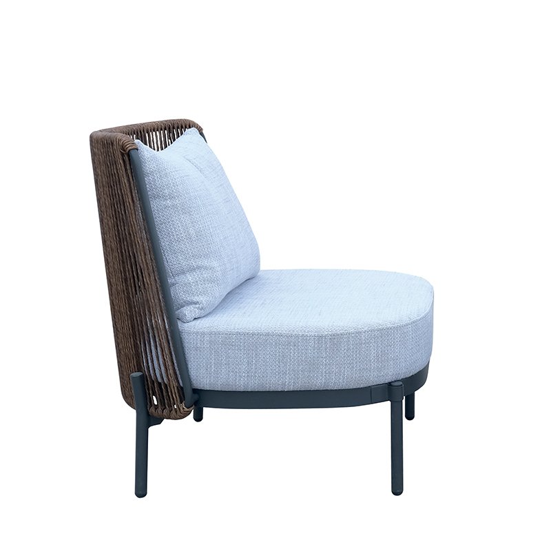 POWDER COATED STEEL FRAME / WOVEN SYNTHETIC CORD BACK / UPHOSTERED SEAT / BACK CUSHION INCLUDED