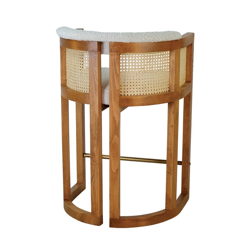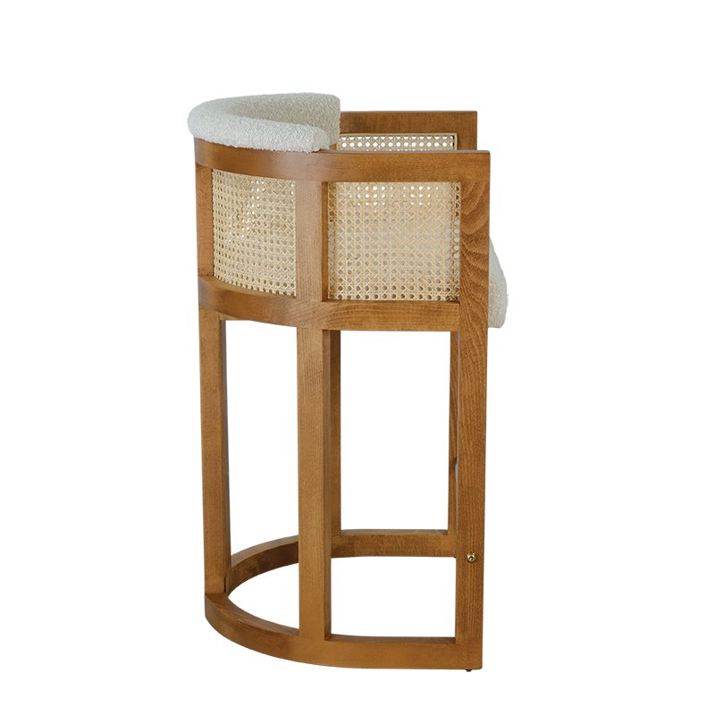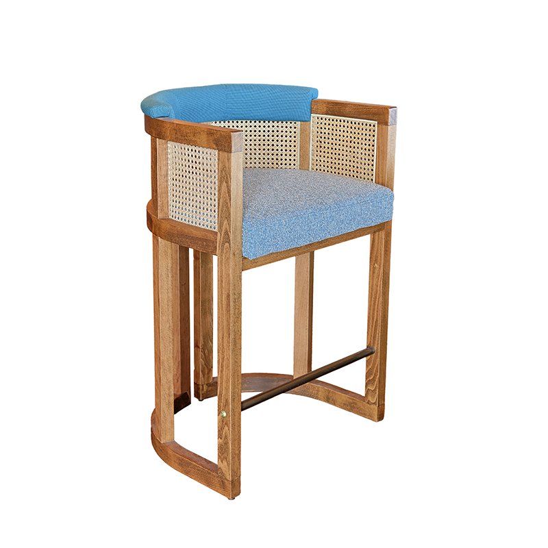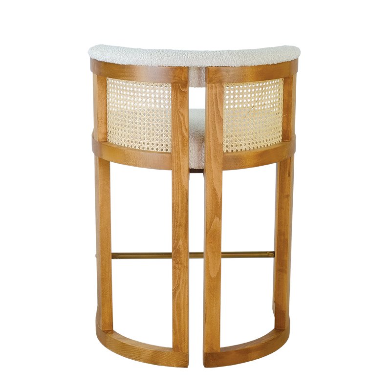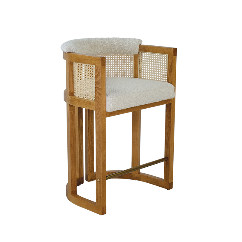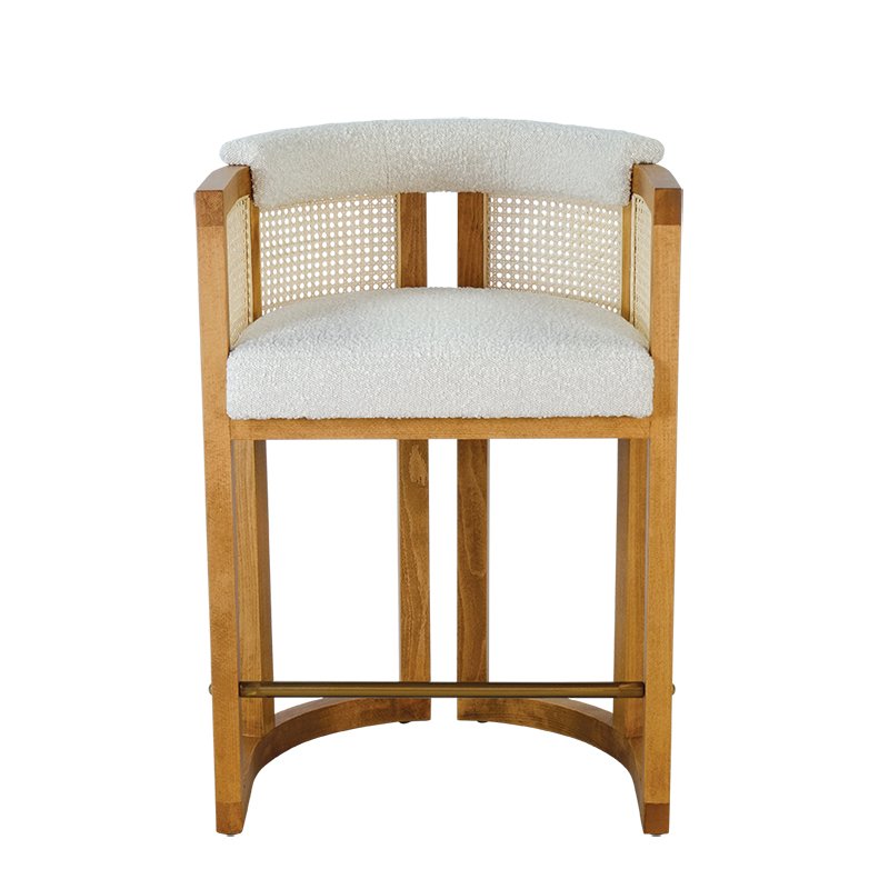 BEECH WOOD FRAME / POWDER COATED STEEL FOOTREST / CANE SHELL / UPHOLSTERED SEAT AND UPPER BACK