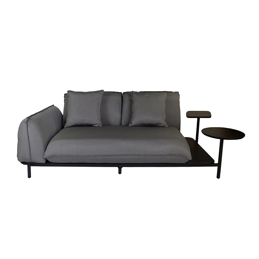 POWDER COATED STEEL FRAME / OAK OR BEECH VENEERED MDF SUPPORT SEAT AND TOPS / UPHOLSTERED SHELL / BACK CUSHIONS (2PCS) INCLUDED