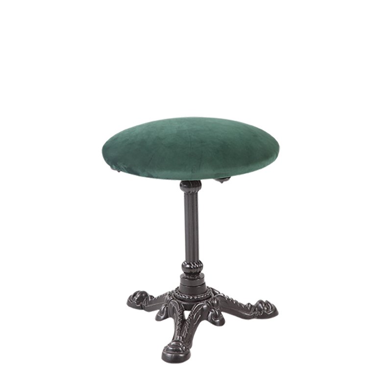 CAST IRON FRAME / POWDER COATED STEEL FOOTREST / UPHOLSTERED SEAT