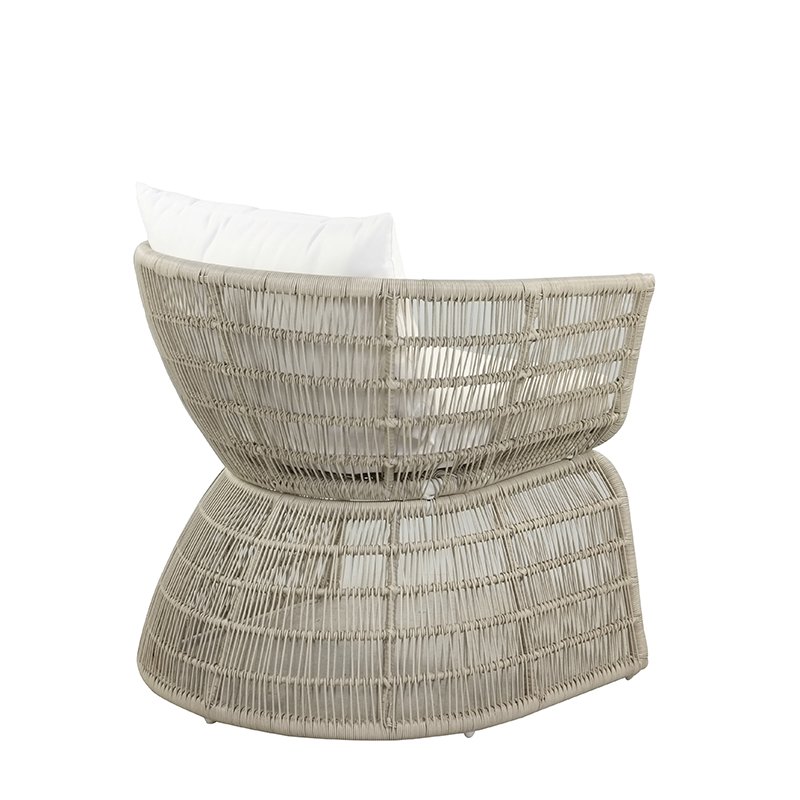POWDER COATED ALUMINUM FRAME / WOVEN SYNTHETIC CORD FRAME / SEAT AND BACK CUSHIONS INCLUDED