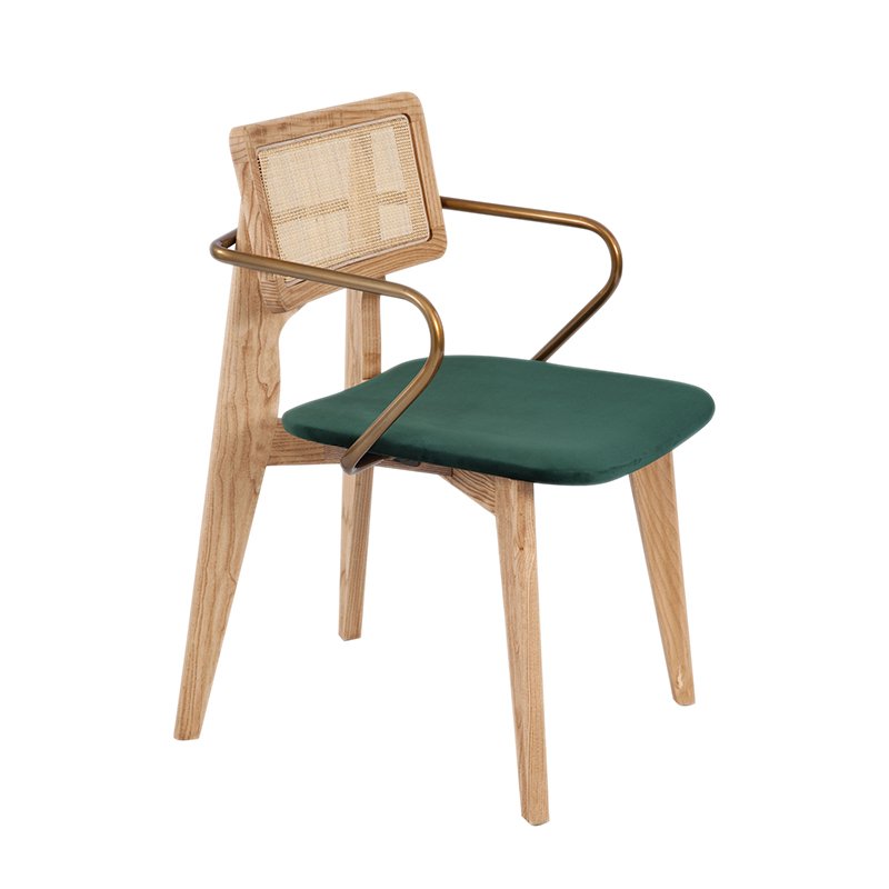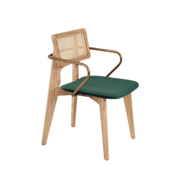 BEECH WOOD FRAME / POWDER COATED STEEL ARMRESTS / UPHOLSTERED SEAT / CANE BACK