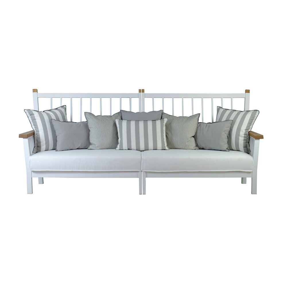 POWDER COATED ALUMINUM FRAME / TROPICAL WOOD ARMRESTS / SEAT AND BACK CUSHIONS INCLUDED