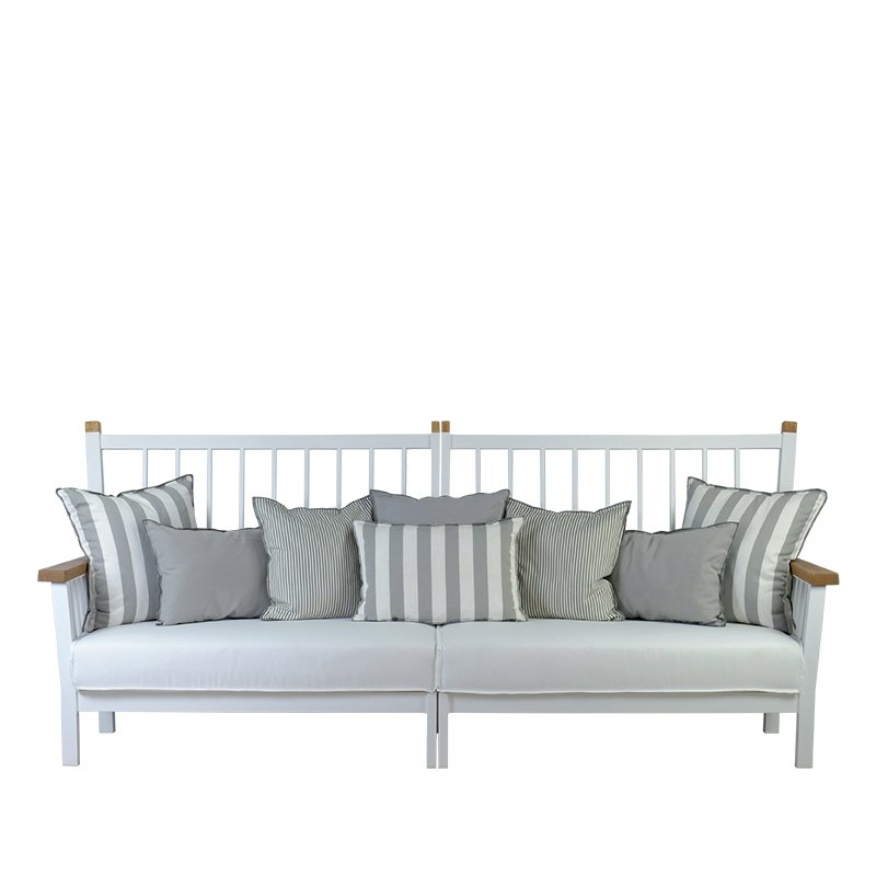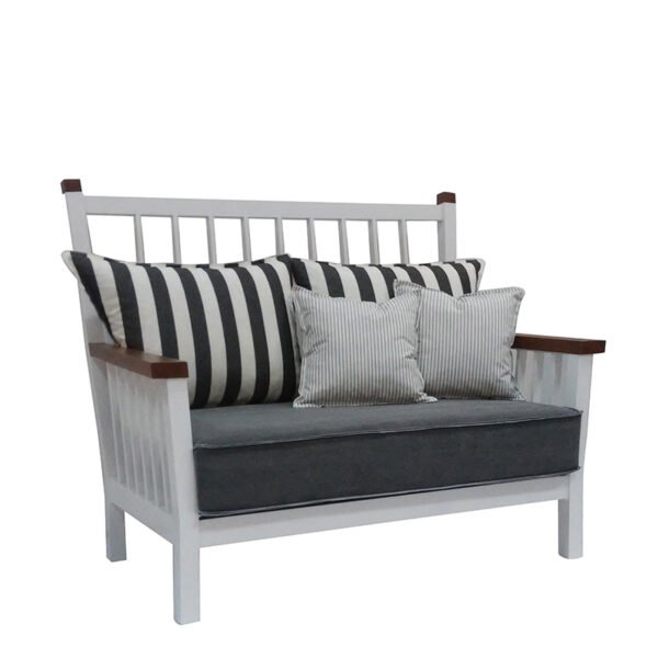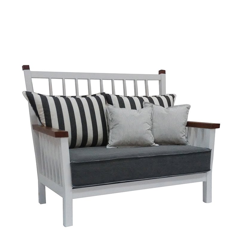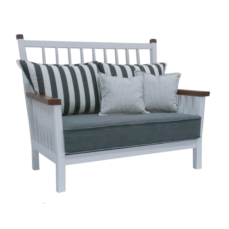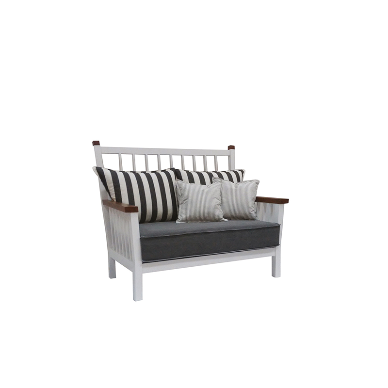 POWDER COATED ALUMINUM FRAME / TROPICAL WOOD ARMRESTS / SEAT AND BACK CUSHIONS INCLUDED