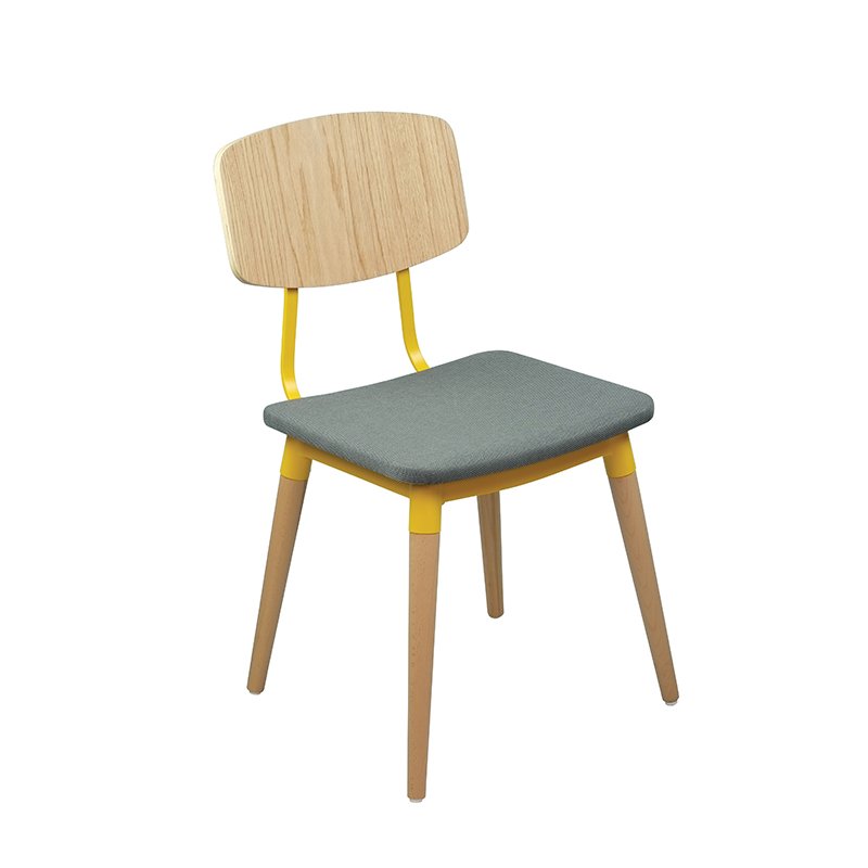 BEECH OR WALNUT OR OAK VENEERED PLYWOOD FRAME / POWDER COATED STEEL DETAILS / UPHOLSTERED SEAT